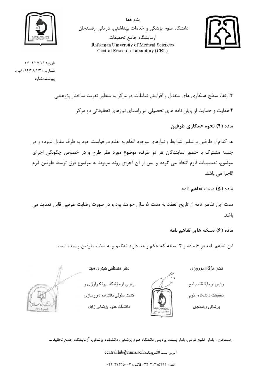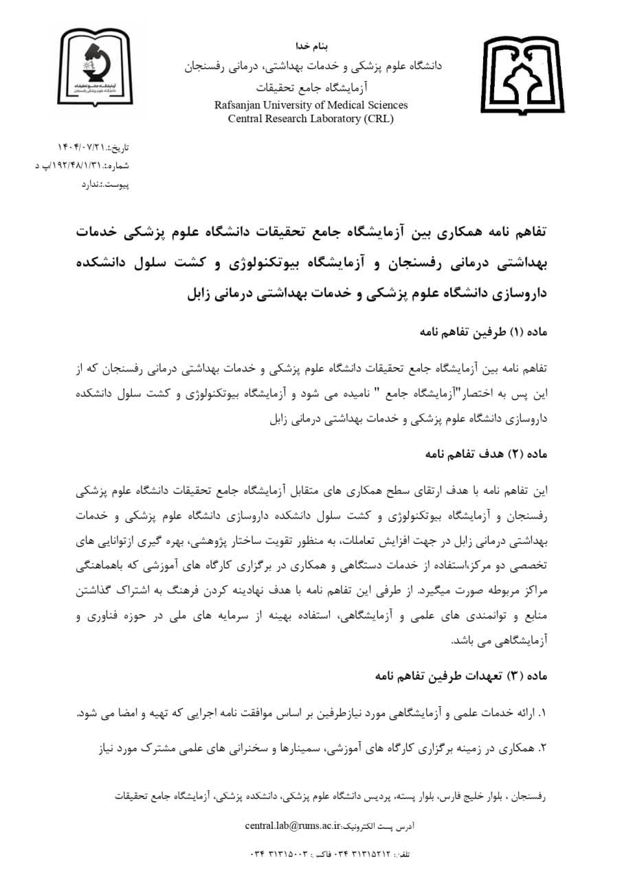 تفاهم نامه با دانشگاه علوم پزشکی زابل